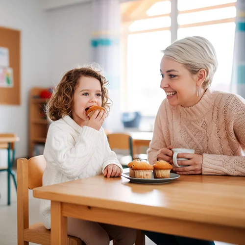 Busy mornings for mom and dad made easy — grab a quick bite and start the day with a smile, courtesy of our team!